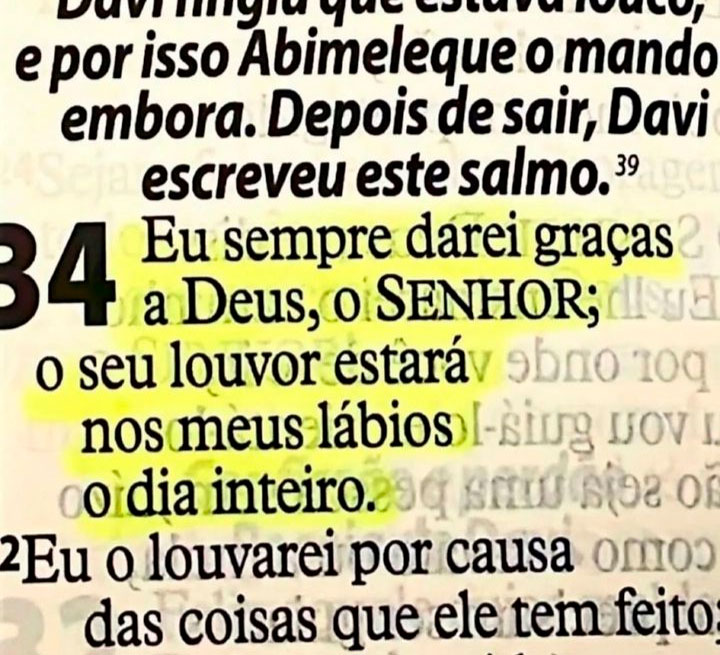 Eu sempre darei graças a Deus, o Senhor. O seu louvor estará nos meus lábios o dia inteiro.