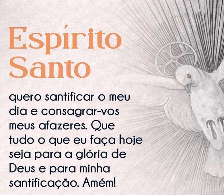 Espírito Santo Quero Santificar o meu dia e consagrar-vos meus afazeres. Que tudo o que eu faça hoje seja para a glória de Deus e para minha santificação.