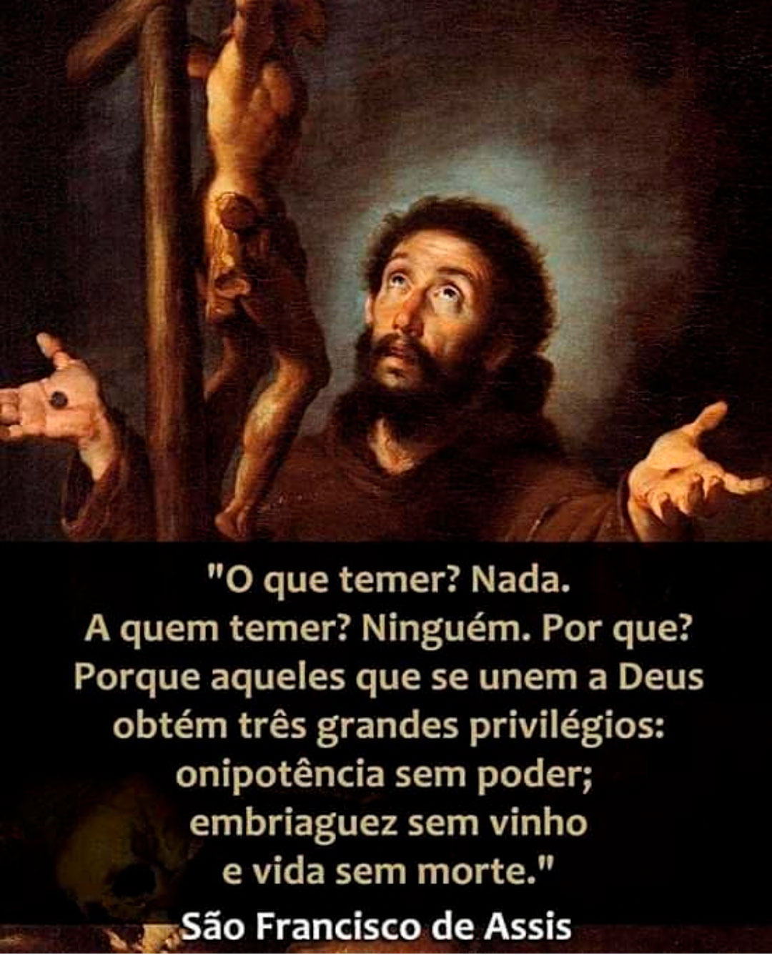 “O que temer? Nada. A quem temer? Ninguém. Por que? Porque aqueles que se unem a Deus obtém três grandes privilégios: onipotência sem poder; embriaguez sem vinho e vida sem morte.”