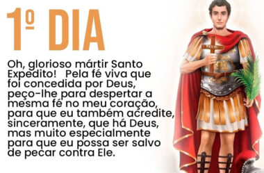 Novena para Santo Expedito 8° Dia Oh, glorioso mártir Santo Expedito! Por meio de um desejo puro, que reinou em todos os seus sentimentos, palavras e ações, por favor, guiai-me na minha busca incessante para a Glória de Deus e o bem dos meus semelhantes.