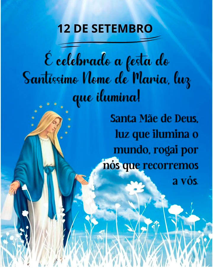 12 de setembro é celebrado a festa do Santíssimo Nome de Maria, luz que ilumina! Santa Mãe de Deus, luz que ilumina o mundo, rogai por nós que recorremos a vós.