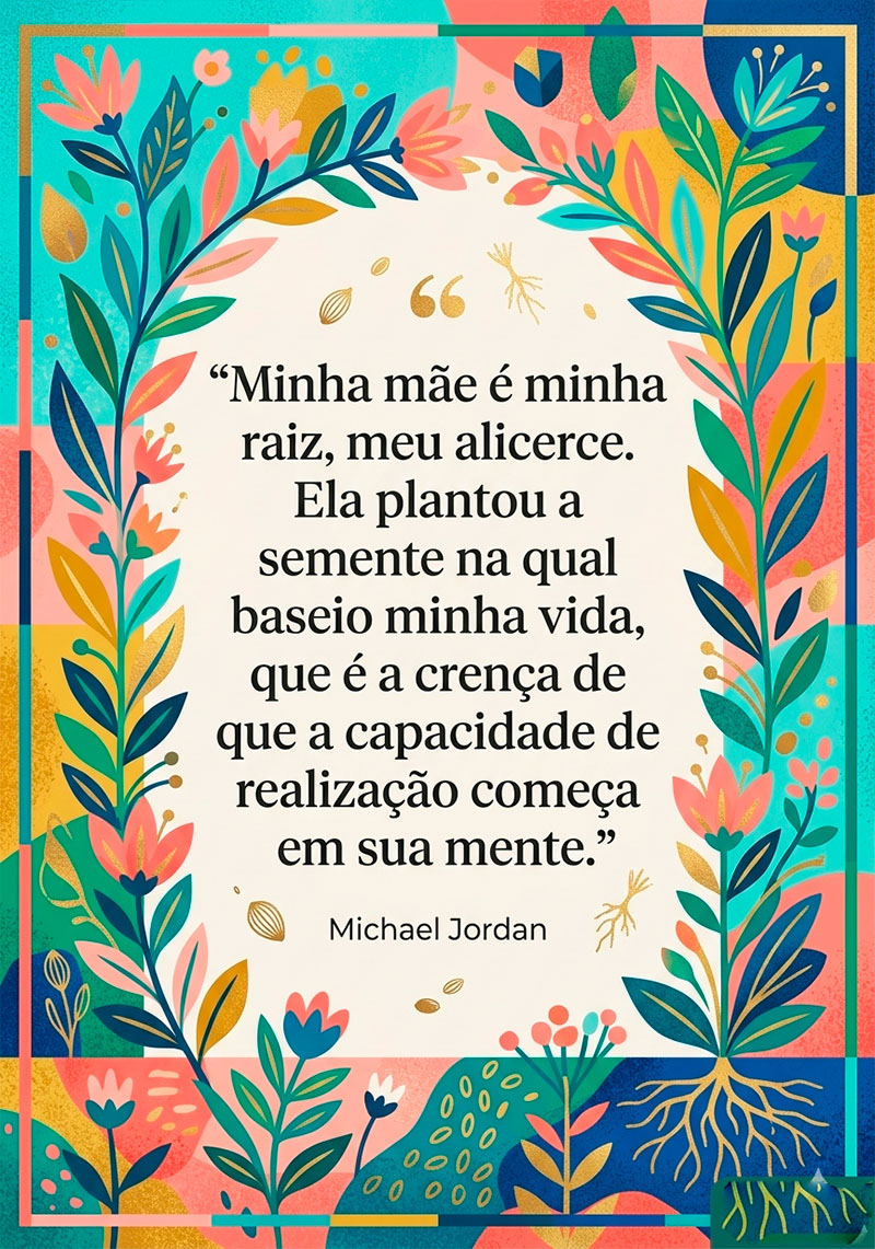 “Minha mãe é minha raiz, meu alicerce. Ela plantou a semente na qual baseio minha vida, que é a crença de que a capacidade de realização começa em sua mente.”