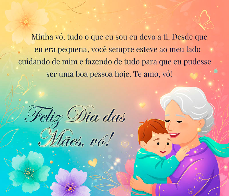 “Minha vó, tudo o que eu sou eu devo a ti. Desde que eu era pequena, você sempre esteve ao meu lado cuidando de mim e fazendo de tudo para que eu pudesse ser uma boa pessoa hoje. Te amo, vó!