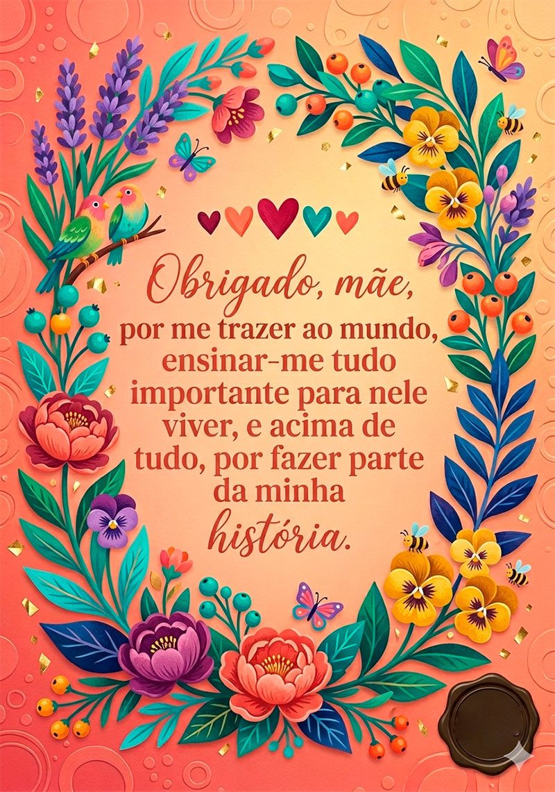 “Obrigado, mãe, por me trazer ao mundo, ensinar-me tudo importante para nele viver, e acima de tudo, por fazer parte da minha história.”