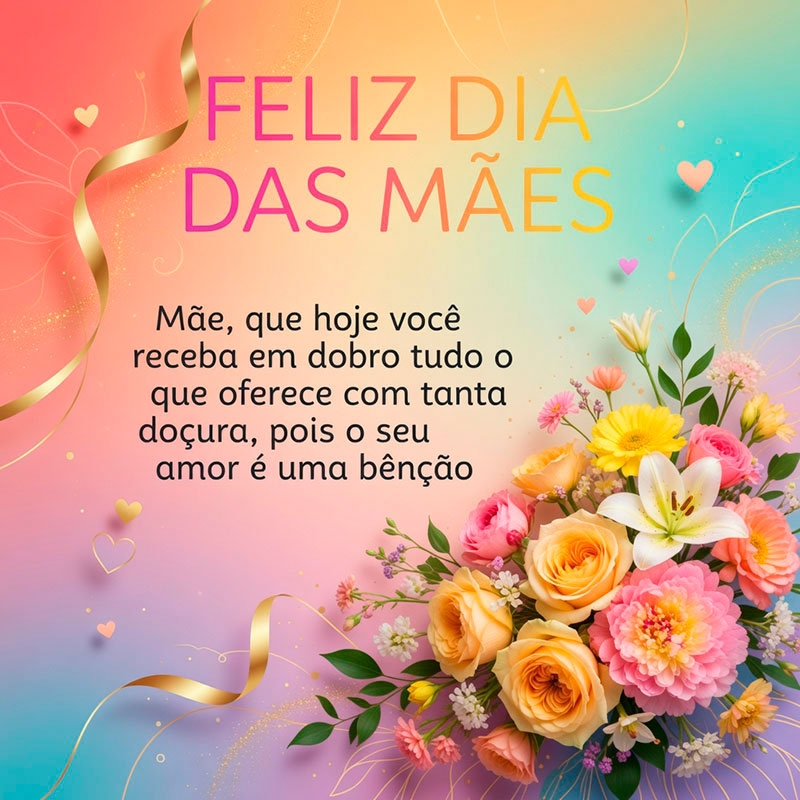 “Mãe, que hoje você receba em dobro tudo o que oferece com tanta doçura, pois o seu amor é uma bênção”