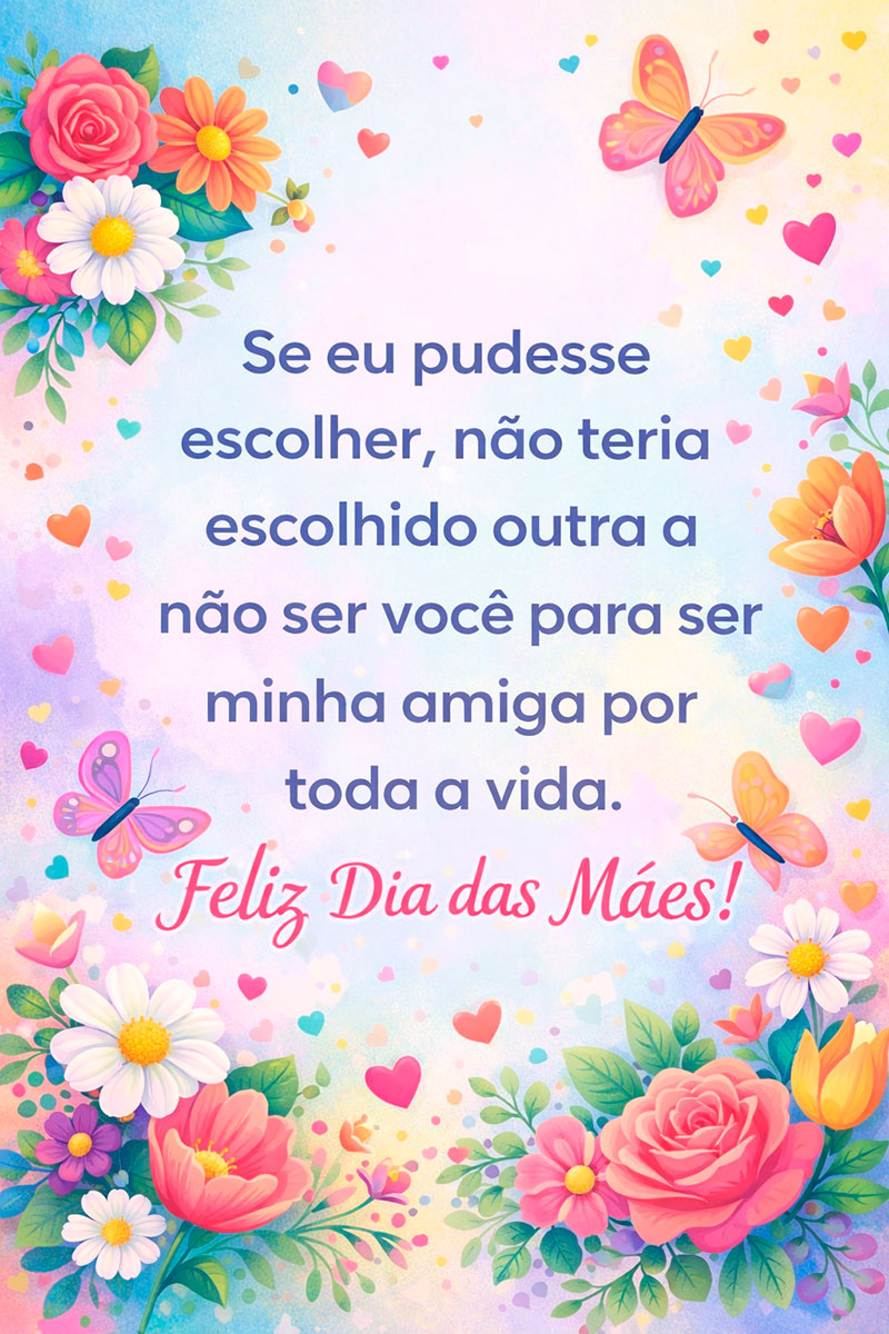 Se eu pudesse escolher, não teria escolhido outra a não ser você para ser minha amiga por toda a vida.
