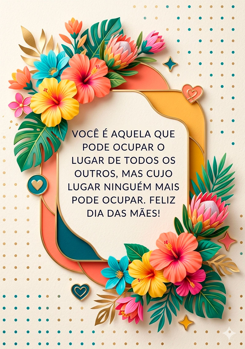 “VOCÊ É AQUELA QUE PODE OCUPAR O LUGAR DE TODOS OS OUTROS, MAS CUJO LUGAR NINGUÉM MAIS PODE OCUPAR. FELIZ DIA DAS MÃES!”