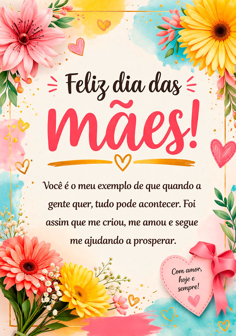 Você é o meu exemplo de que quando a gente quer, tudo pode acontecer. Foi assim que me criou, me amou e segue me ajudando a prosperar.