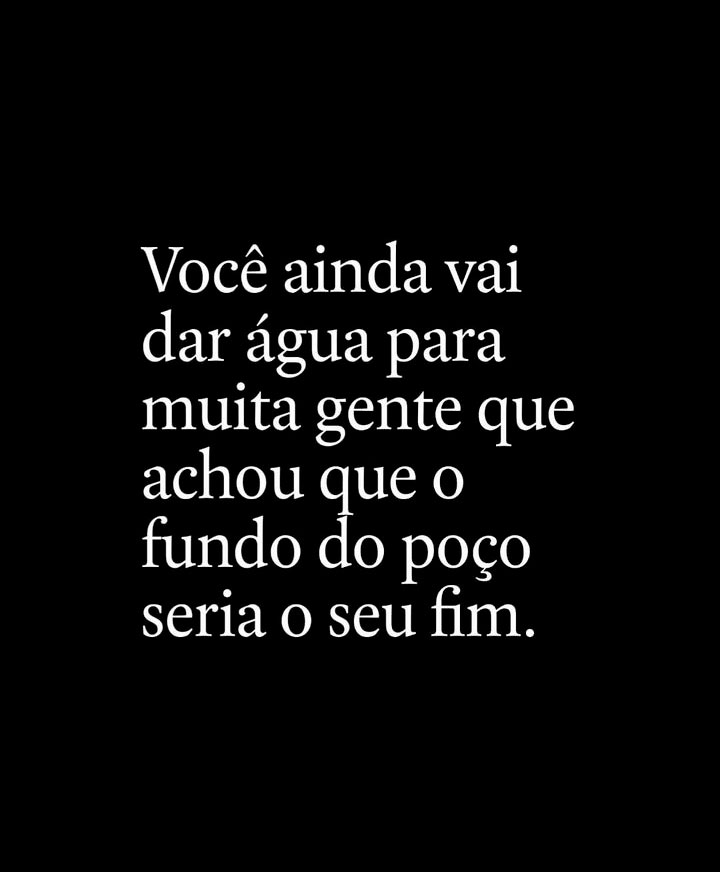 Você ainda vai dar água para muita gente que achou que o fundo do poço seria o seu fim.