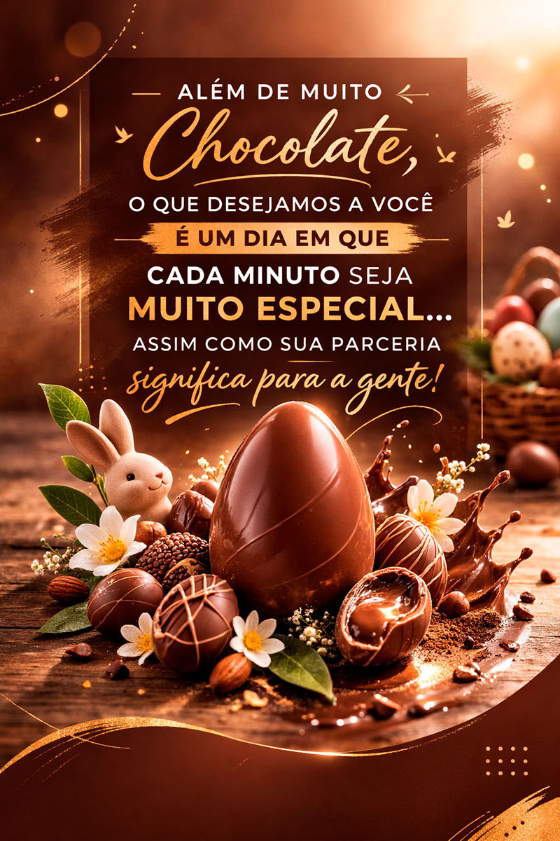“Além de muito Chocolate, o que desejamos a você é um dia em que cada minuto seja muito especial… assim como sua parceria significa para a gente!”