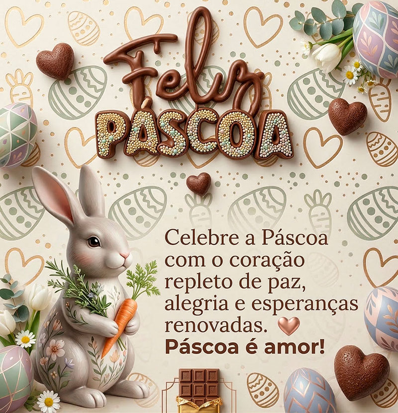 Celebre a Páscoa com o coração repleto de paz, alegria e esperanças renovadas.