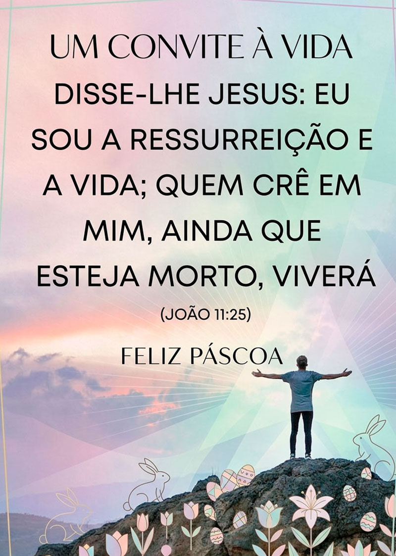 Disse-lhe Jesus: Eu sou a ressurreição e a vida; quem crê em mim, ainda que esteja morto, viverá.