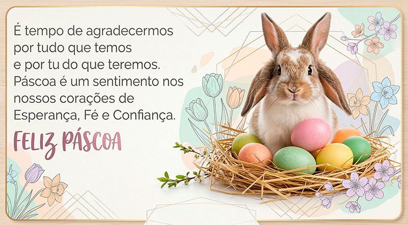 Páscoa é um sentimento nos nossos corações de Esperança, Fé e Confiança.