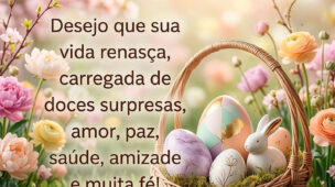 Que o verdadeiro sentido da Páscoa esteja presente em nossas vidas: o renascimento de Jesus Cristo em nossos corações, com muita paz, alegria e energias renovadas.