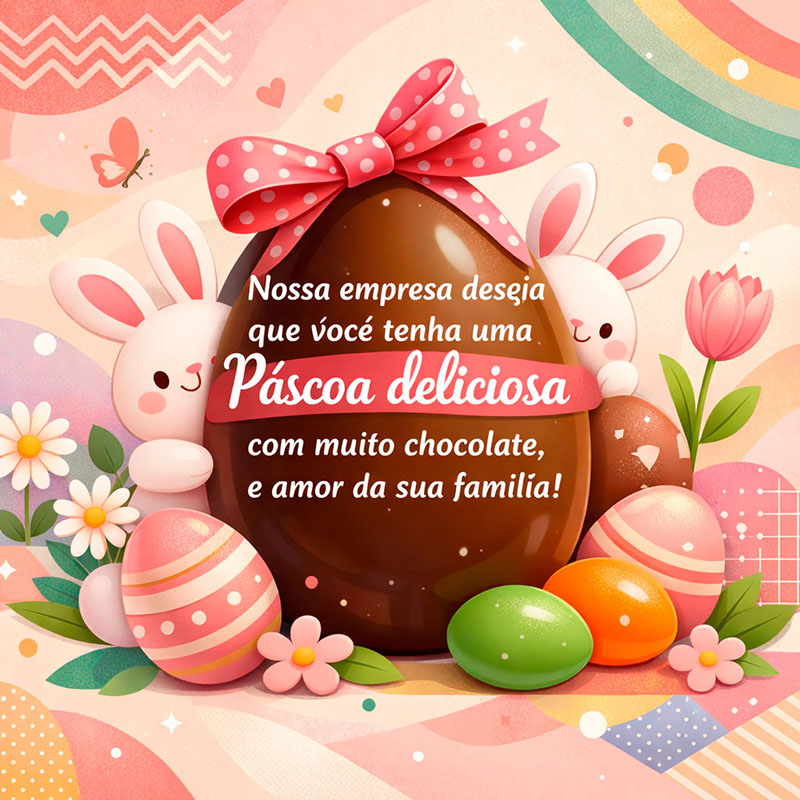 “Nossa empresa deseja que você tenha uma Páscoa deliciosa com muito chocolate, e amor da sua família!”