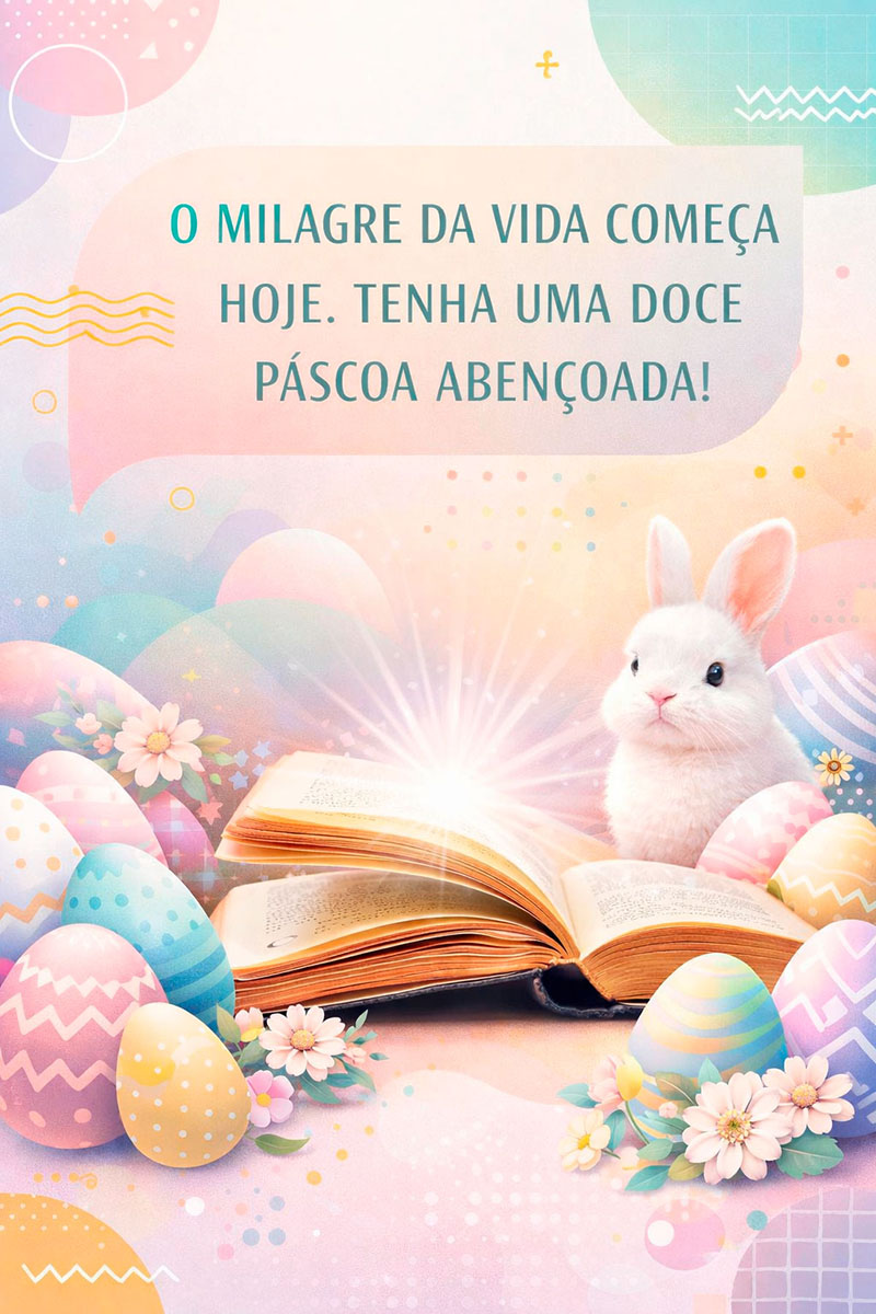 “O MILAGRE DA VIDA COMEÇA HOJE. TENHA UMA DOCE PÁSCOA ABENÇOADA!”