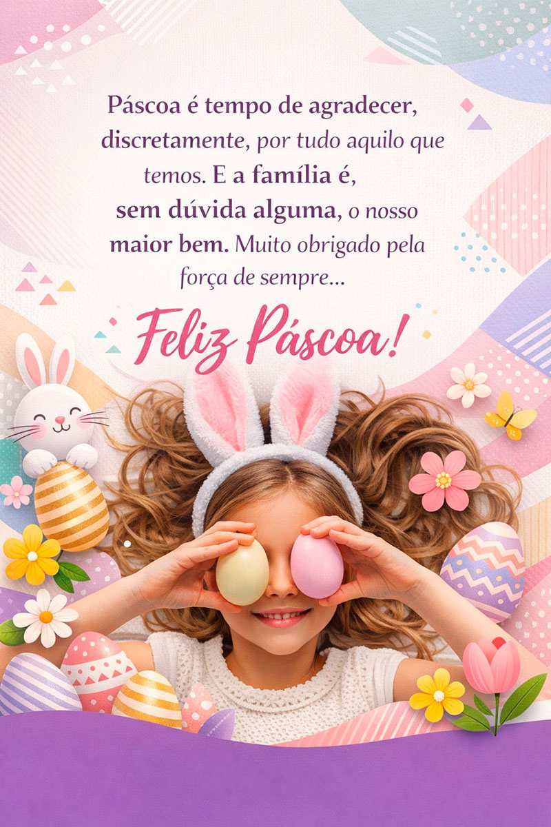 “Páscoa é tempo de agradecer, discretamente, por tudo aquilo que temos. E a família é, sem dúvida alguma, o nosso maior bem. Muito obrigado pela força de sempre…