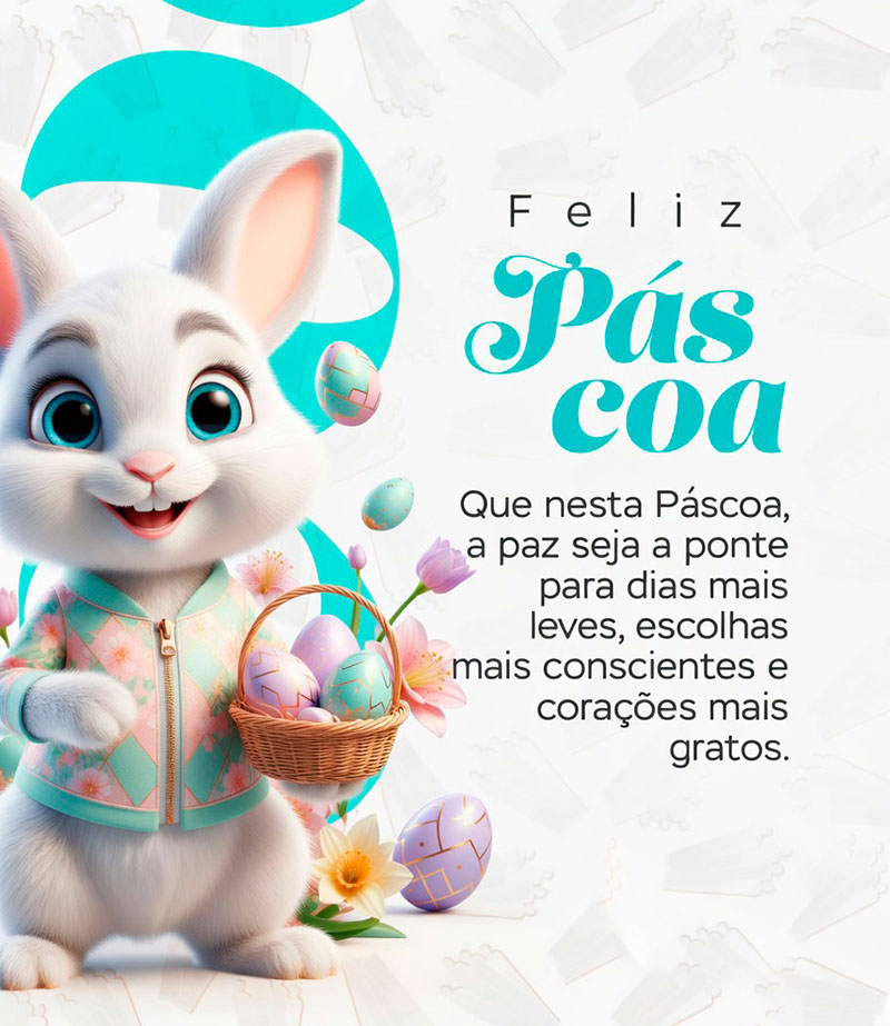 Que nesta Páscoa, a paz seja a ponte para dias mais leves, escolhas mais conscientes e corações mais gratos.