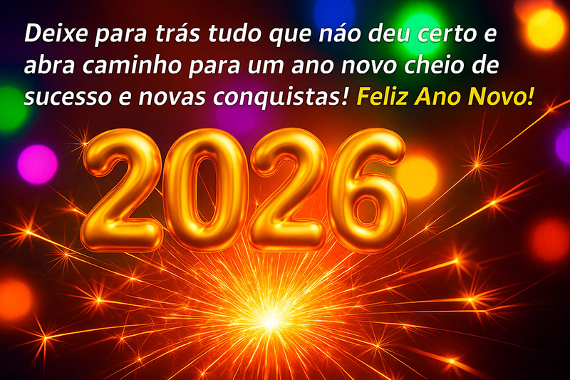 Deixe para trás tudo que não deu certo e abra caminho para um ano novo cheio de sucesso e novas conquistas! Feliz Ano Novo!