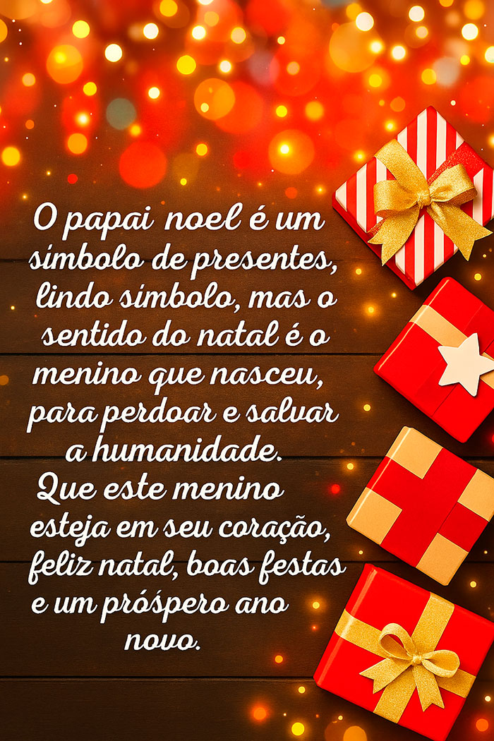 O Papai Noel é um símbolo de presentes, lindo símbolo, mas o sentido do Natal é o menino que nasceu para perdoar e salvar a humanidade.