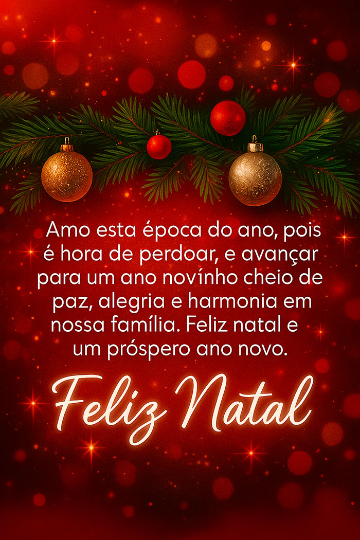 “Amo esta época do ano, pois é hora de perdoar e avançar para um ano novinho, cheio de paz, alegria e harmonia em nossa família. Feliz Natal e um próspero Ano Novo. Feliz Natal.”