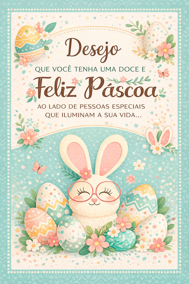 “Desejo que você tenha uma doce e Feliz Páscoa ao lado de pessoas especiais que iluminam a sua vida…”