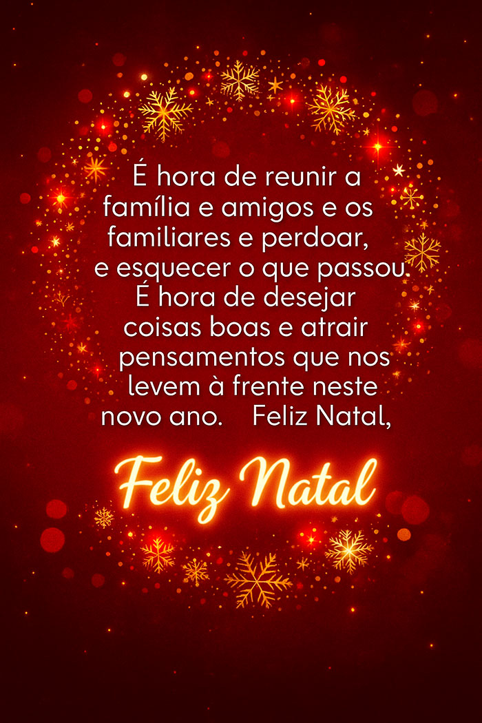 É hora de reunir a família, os amigos e os familiares, perdoar e esquecer o que passou. É hora de desejar coisas boas e atrair pensamentos que nos levem à frente neste novo ano. Feliz Natal!