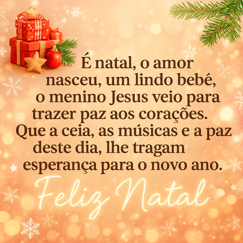 Que a ceia, as músicas e a paz deste dia lhe tragam esperança para o novo ano.