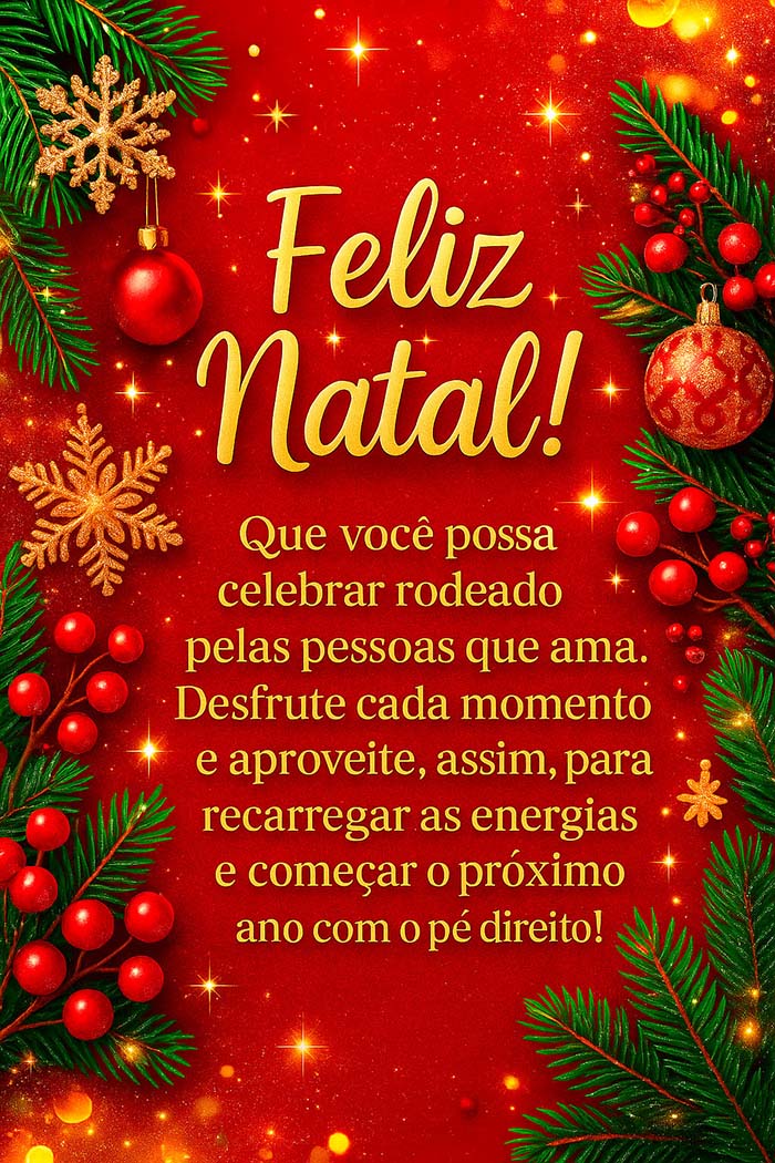 “Feliz Natal! Que você possa celebrar rodeado pelas pessoas que ama. Desfrute cada momento e aproveite, assim, para recarregar as energias e começar o próximo ano com o pé direito!”