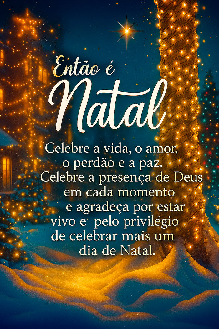 Celebre a vida, o amor, o perdão e a paz. Celebre a presença de Deus em cada momento e agradeça por estar vivo e pelo privilégio de celebrar mais um dia de Natal.