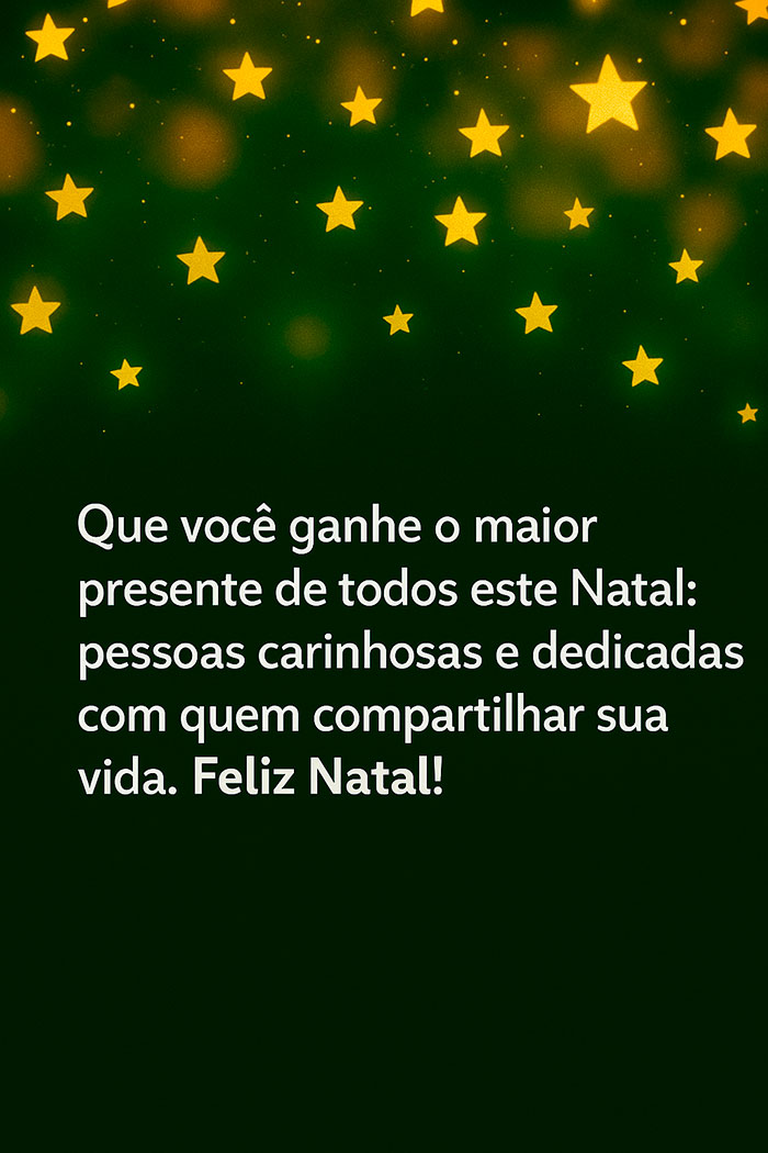 Que você ganhe o maior presente de todos, neste Natal: pessoas carinhosas e dedicadas com quem compartilhar a sua vida. Feliz Natal!