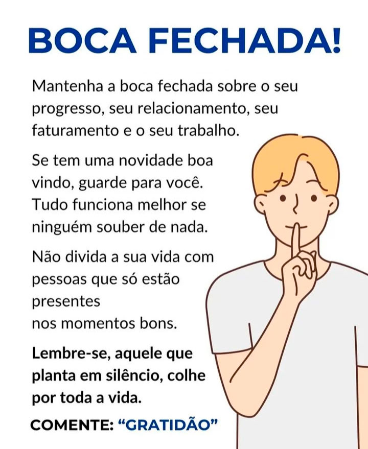 Mantenha a boca fechada sobre o seu progresso, seu relacionamento, seu faturamento e o seu trabalho.