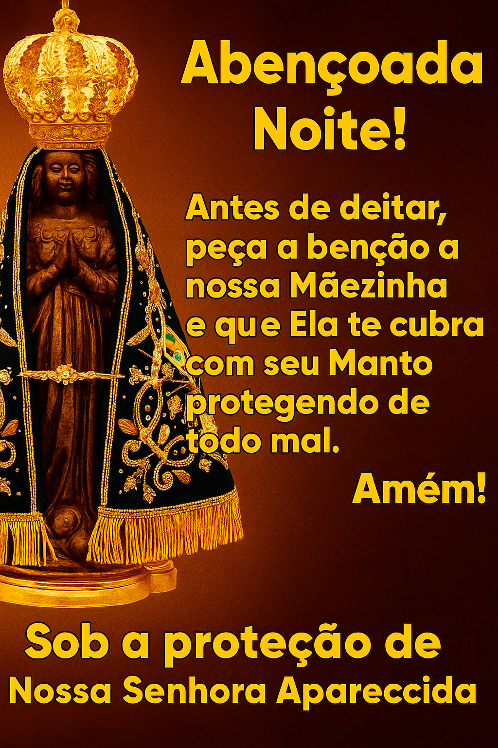 Antes de deitar, peça a benção a nossa Mãezinha e que Ela te cubra com seu Manto protegendo de todo mal. Amém!