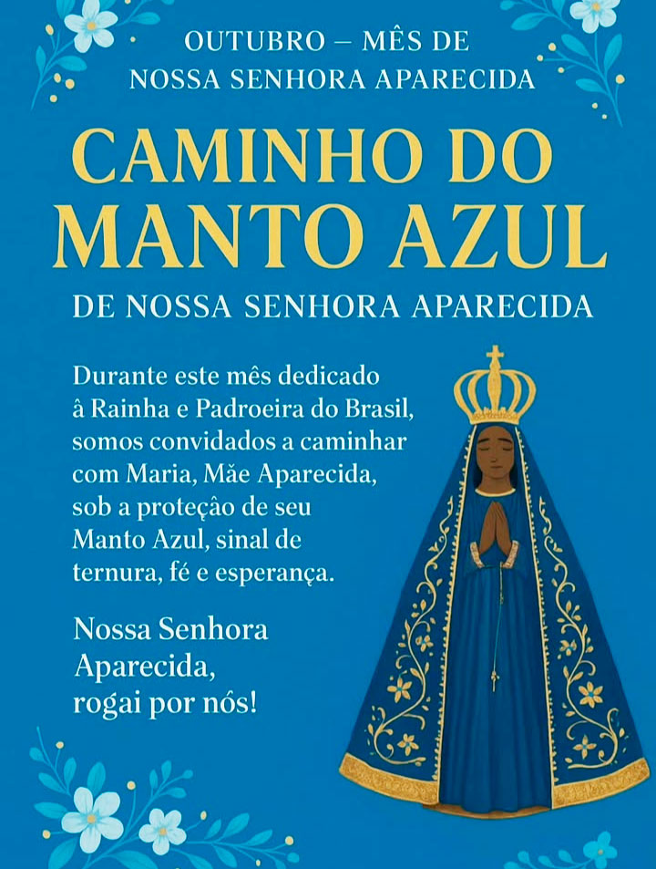 Durante este mês dedicado à Rainha e Padroeira do Brasil, somos convidados a caminhar com Maria, Mãe Aparecida, sob a proteção de seu Manto Azul, sinal de ternura, fé e esperança.