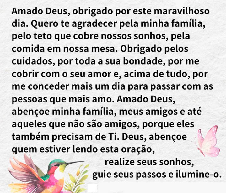 Amado Deus, obrigado por este maravilhoso dia.