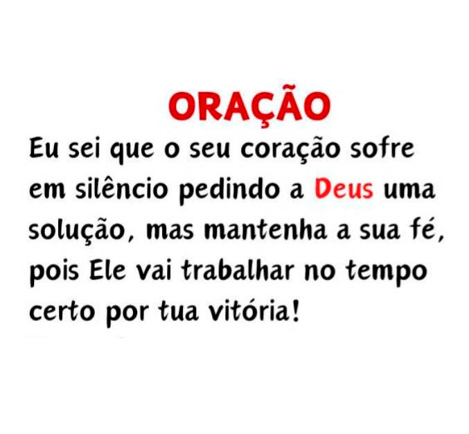 Eu sei que seu coração sofre em silêncio pedindo a Deus uma solução, mas mantenha a sua fé, pois Ele vai trabalhar no tempo certo por tua vitória!