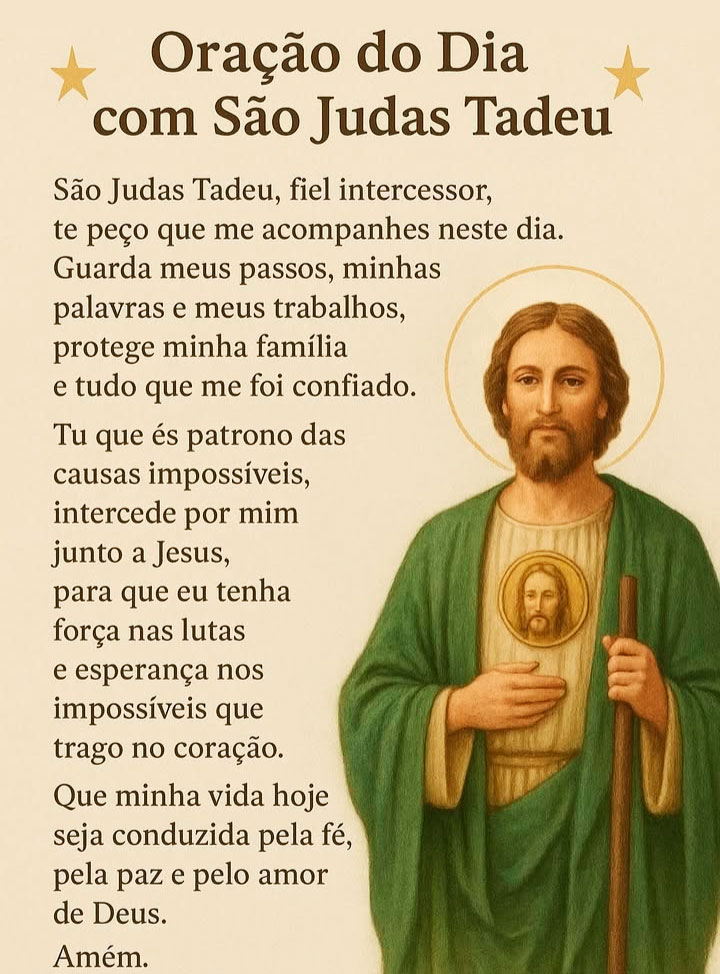 São Judas Tadeu, fiel intercessor, te peço que me acompanhes neste dia.