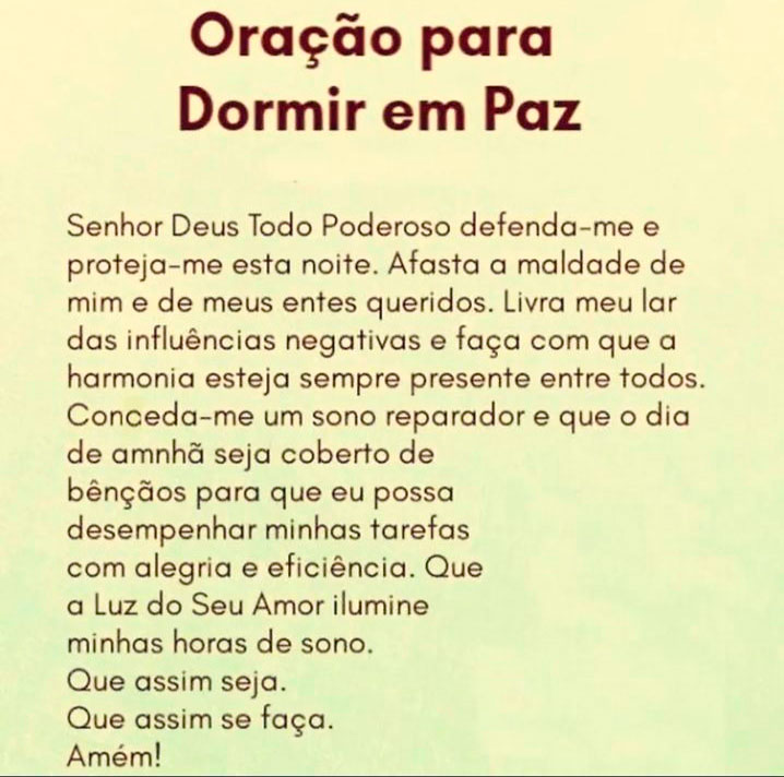 Conceda-me um sono reparador e que o dia de amanhã seja coberto de bênçãos para que eu possa desempenhar minhas tarefas com alegria e eficiência.